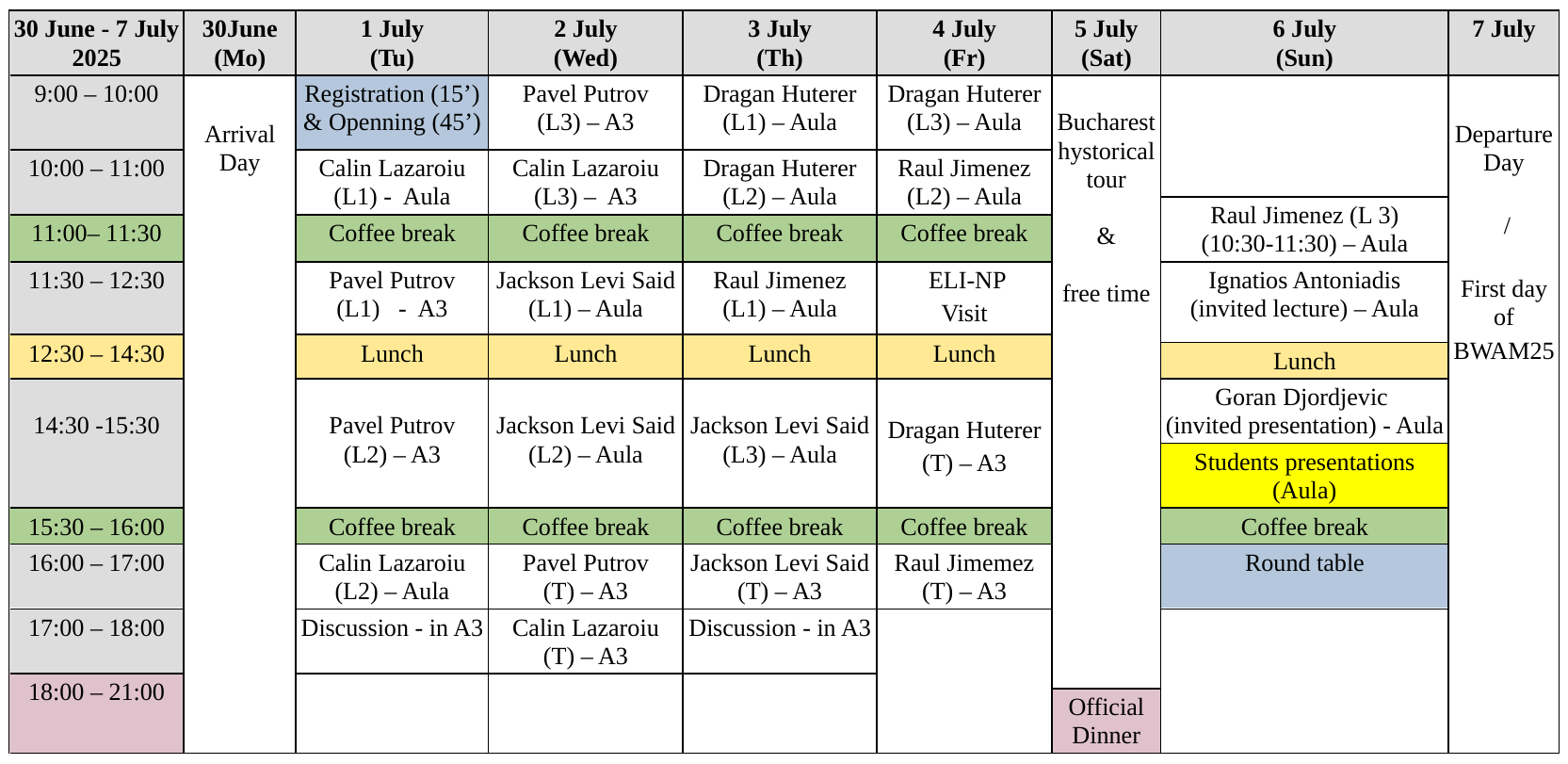 - BWAM25 - the SEENET-MTP Workshop and Assessment Meeting (July 7-8, 2025), organized at University Politehnica of Bucharest.